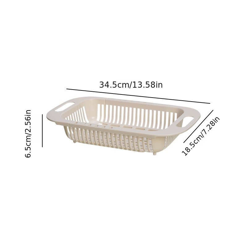 1pc Retractable Adjustable Vegetable Drain Basket; Rectangular Plastic Basket; Household Kitchen Dishwashing And Vegetable Rack; Sink Drain Basket